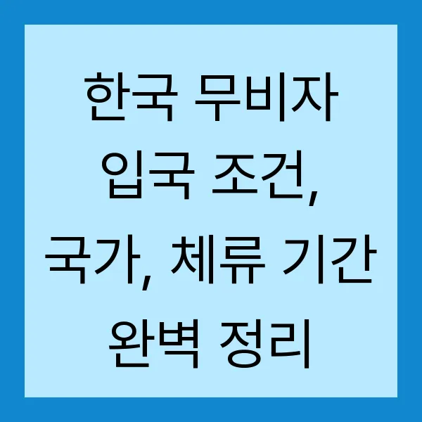 한국 방문을 꿈꾸시나요? 비자 없이 한국에 입국할 수 있는 방법, 바로 무비자 입국 제도입니다! 이 포스팅에서는 2025년 최신 정보를 기반으로 무비자 입국 조건, 대상 국가, 체류 기간, 그리고 필수 서류까지 꼼꼼하게 정리했습니다. 한국 무비자 입국에 대한 모든 궁금증, 지금 바로 해결하세요! (무비자, 비자면제, 한국 입국, 체류기간, 필요서류)